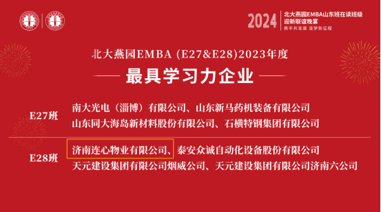 在北大燕園EMBA學(xué)習(xí)中,連心物業(yè)戚圣輝、曹立、孟令乾、李寶建等四位高層管理人員憑借認真學(xué)習(xí)態(tài)度和出色學(xué)習(xí)成績,榮獲2023年度“優(yōu)秀學(xué)員獎,連心物業(yè)公司榮獲“最具學(xué)習(xí)力企業(yè)獎”。他們的優(yōu)異表現(xiàn),充分展現(xiàn)了連心物業(yè)在培養(yǎng)高素養(yǎng)管理人才方面的實力與成效。