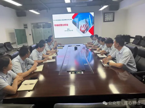2024年7月12日下午,濟南連心物業(yè)有限公司2024年上半年經(jīng)營分析會在1707會議室召開。會議由公司黨支部副書記、總經(jīng)理曹立主持,公司高管、項目經(jīng)理、部門經(jīng)理、市場部人員等參加此次經(jīng)營分析會。