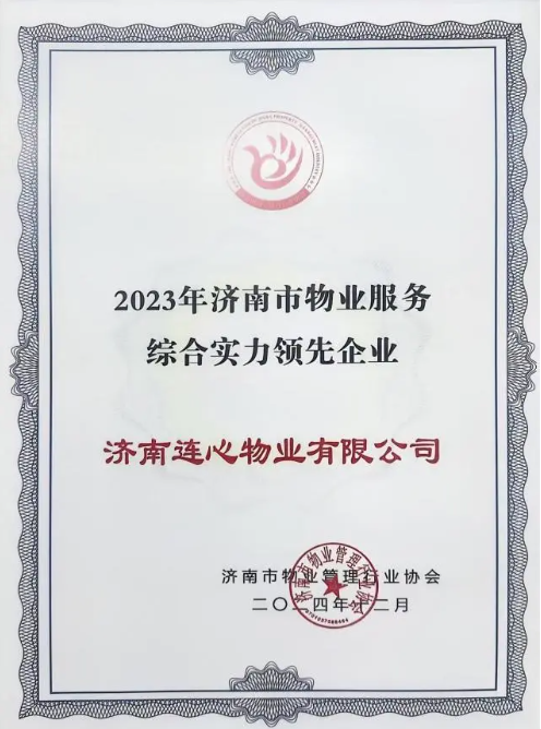 濟(jì)南連心物業(yè)有限公司榮獲“濟(jì)南市物業(yè)服務(wù)綜合實(shí)力領(lǐng)先企業(yè)”、“2024年度金牌會(huì)員單位”、山東電力中心醫(yī)院項(xiàng)目獲“2024年度物業(yè)服務(wù)標(biāo)準(zhǔn)化等級(jí)評(píng)定4A級(jí)”等榮譽(yù)稱(chēng)號(hào)。