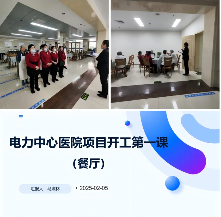 隨著春節(jié)假期的結(jié)束,濟(jì)南連心物業(yè)有限公司駐山東電力中心醫(yī)院項(xiàng)目部于2025年2月5日(正月初八)開展開工第一課活動。此次活動通過觀看視頻、PPT與現(xiàn)場會相結(jié)合的形式,進(jìn)一步強(qiáng)化秩序維護(hù)、消防安全、保潔服務(wù)及餐廳服務(wù)質(zhì)量等,為醫(yī)院安全運(yùn)營和患者就醫(yī)體驗(yàn)奠定堅實(shí)基礎(chǔ)。