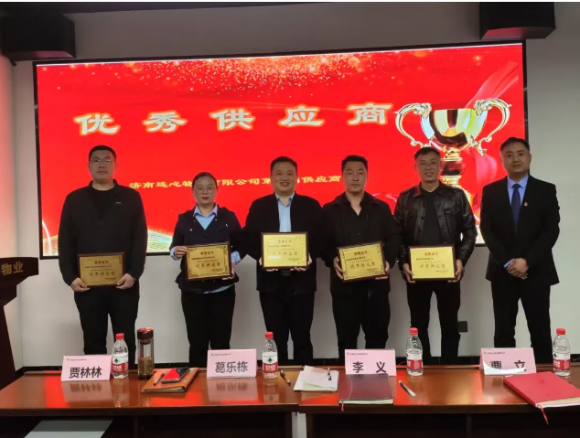 根據(jù)公司優(yōu)秀供應(yīng)商評選辦法,有五家供應(yīng)商被評為“濟南連心物業(yè)2024年度優(yōu)秀供應(yīng)商”,分別是:濟南勝良貿(mào)易有限公司、濟南楚潤清洗工程有限公司、華海財產(chǎn)保險股份有限公司濟南中心支公司、濟南綠博園農(nóng)林物資有限公司、濟南金谷源商貿(mào)有限公司。公司總經(jīng)理曹立為5家優(yōu)秀供應(yīng)商頒發(fā)“優(yōu)秀供應(yīng)商”證書。