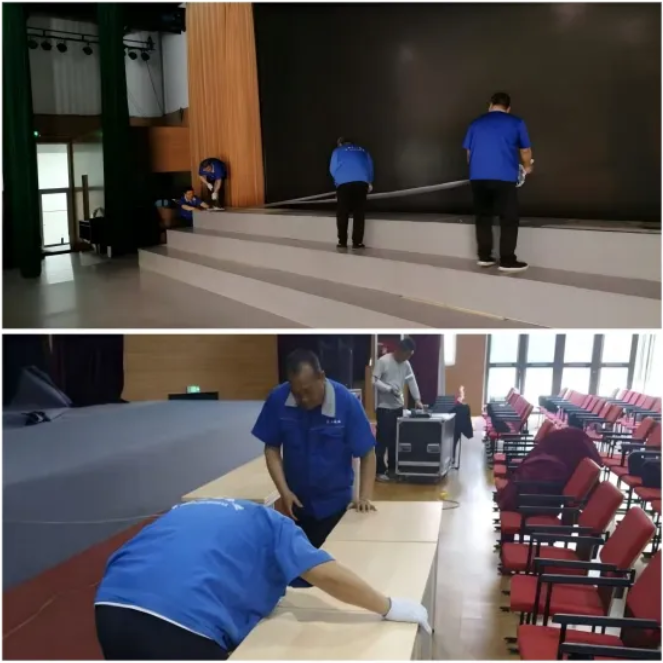 活動籌備期間,連心物業(yè)駐濟南外國語學校項目部各服務條線緊密協(xié)作,以高度的責任感和使命感踐行“用心去做,快樂服務”的服務宗旨,全力為演出保駕護航。綠化人員提前養(yǎng)護綠植,修剪枝葉、補植花壇草坪,營造出綠意盎然的校園環(huán)境;保潔人員化身“環(huán)境美容師”,對校園環(huán)境展開“地毯式”清潔,從演出場地到周邊道路,從觀眾席到后臺區(qū)域,每一處角落都細致清掃,確保校園整潔如新;工程維修人員對電力和舞臺設備進行全面檢查,及時排除隱患,精心搭建舞臺,保障設備零故障運行;客服人員化身熱情向導,在校園入口、場館通道等重要點位引導人流,協(xié)助維護現(xiàn)場秩序,及時協(xié)調解決現(xiàn)場突發(fā)問題,為觀眾提供貼心的問詢、指引服務。