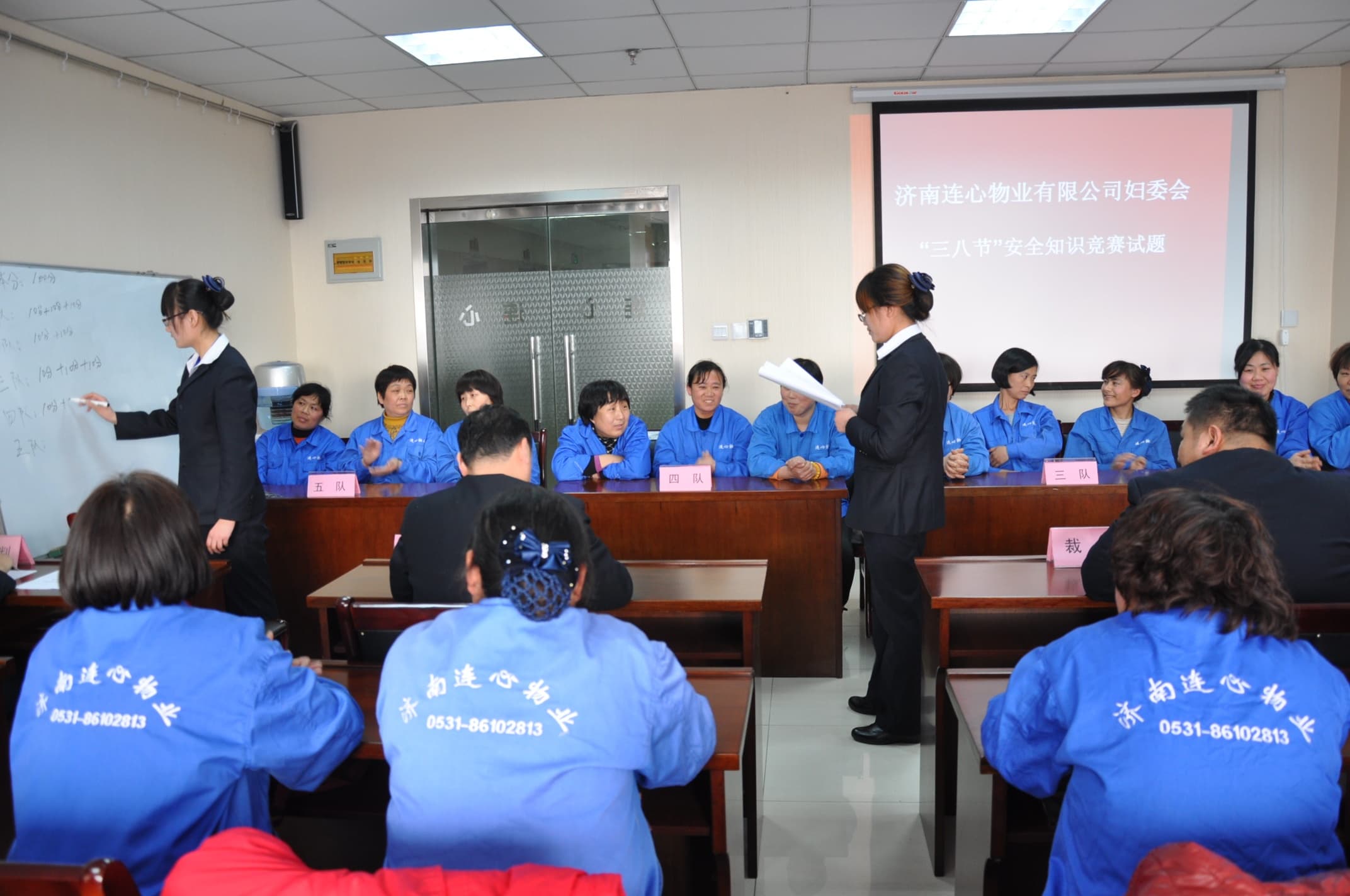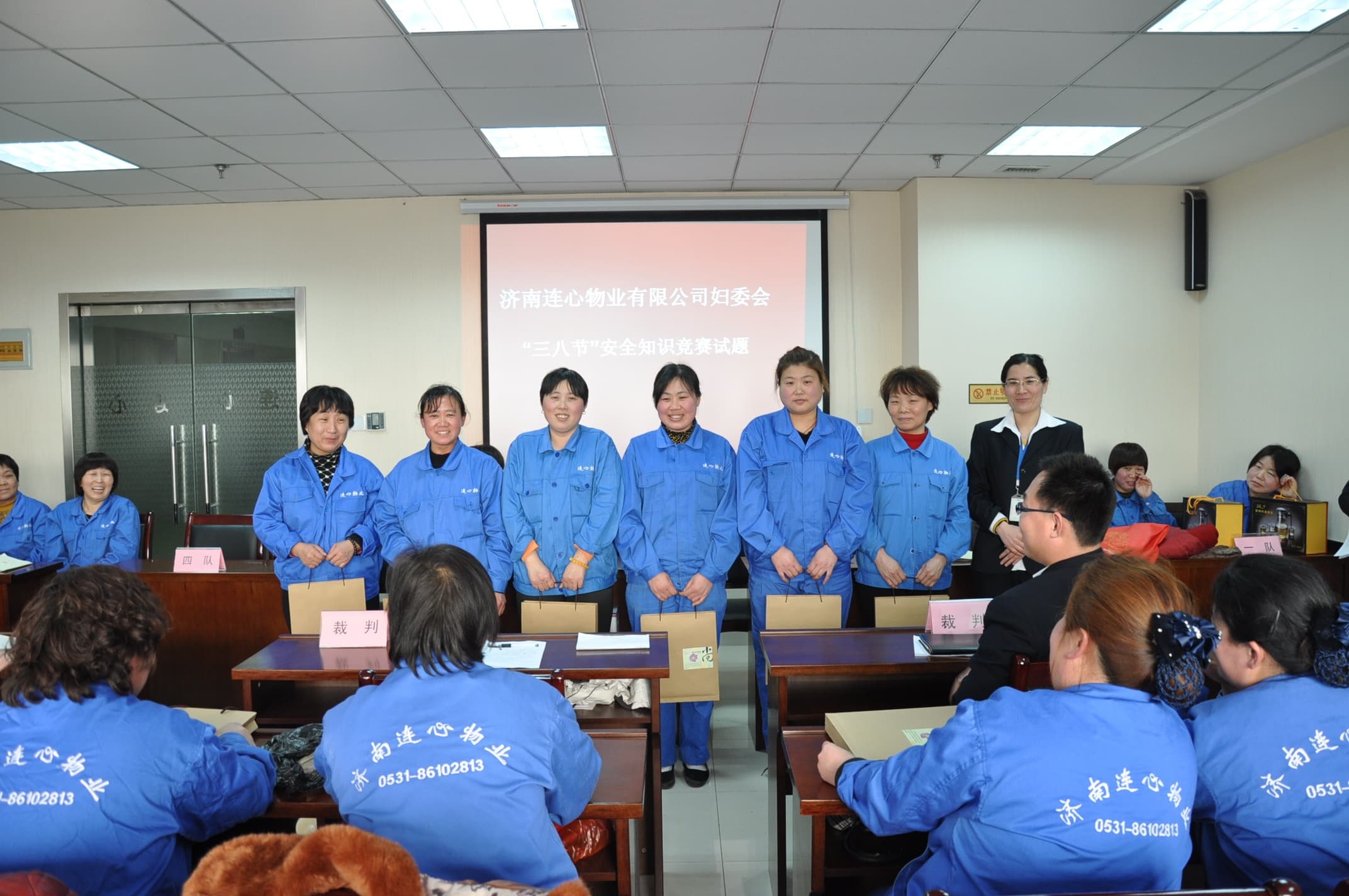 為落實黨的十八大和十八屆三中全會精神,貫徹歷下區(qū)婦聯(lián)“建首善歷下 著巾幗華章”的思想,積極展現(xiàn)女職工的精神風(fēng)貌,發(fā)揮好“半邊天”的作用,濟(jì)南連心物業(yè)有限公司婦委會于2014年3月5日以“安全生產(chǎn)”為主題在連心培訓(xùn)中心舉行了知識競賽,來自各項目的35名員工代表參加了競賽。濟(jì)南連心物業(yè)有限公司常務(wù)副總經(jīng)理戚圣輝、工會主席吳建軍、副總經(jīng)理孟令乾、婦委會主任向修榮、婦委會副主任段俊紅作為裁判出席了本次活動。