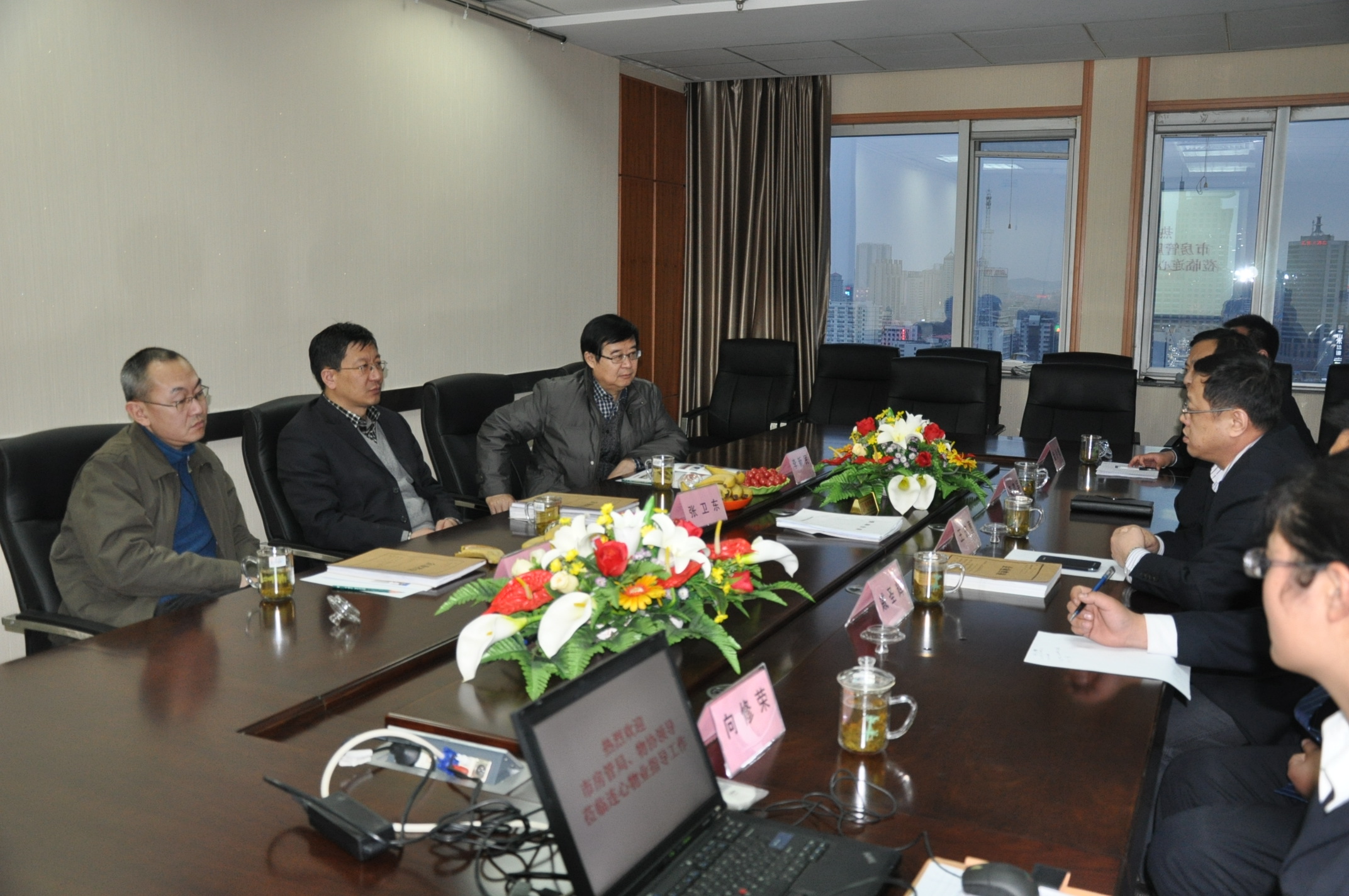 2014年3月12日,濟南市房管局張衛(wèi)東處長、市物協(xié)秘書長李新民、歷下區(qū)房管局產(chǎn)權(quán)科科長韓東等領(lǐng)導(dǎo)蒞臨連心物業(yè)指導(dǎo)工作。觀看了公司宣傳片、聽取工作匯報。公司總經(jīng)理王宏勇將公司當(dāng)前的經(jīng)營管理現(xiàn)狀、人員結(jié)構(gòu)、職業(yè)技能培訓(xùn)等一一作了介紹。張?zhí)庨L表示:“連心物業(yè)的發(fā)展一直是穩(wěn)扎穩(wěn)打,堪為行業(yè)的楷模,服務(wù)質(zhì)量也是業(yè)界的標桿”。張?zhí)庨L的話既是對公司前期發(fā)展的肯定,也為后續(xù)的工作提出了要求。