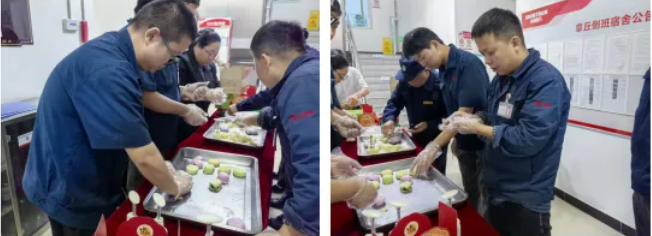 為讓重汽集團住宿職工更深度體驗節(jié)日氛圍,當天下午,“巧手月餅DIY”活動在宿舍區(qū)歡樂開啟?;顒油ㄖ唤?jīng)發(fā)布,便吸引了眾多職工踴躍報名。傍晚六點,活動現(xiàn)場已是人頭攢動,歡聲笑語不絕于耳?,F(xiàn)場布置喜慶溫馨,操作臺上整齊擺放著由食堂提前備好的面團、豆沙、蓮蓉等多種餡料,以及各式精美的月餅?zāi)>?。在認真了解從和面、分劑、包餡到壓模、烘烤的制作步驟后,大家迫不及待地動手實踐,現(xiàn)場氣氛熱烈,笑聲此起彼伏。忙碌一天的職工們此刻圍聚在一起,互相交流制作技巧,分享工作與生活趣事,連心物業(yè)工作人員也用鏡頭記錄下一個個溫馨快樂瞬間。經(jīng)過大家巧手制作,一個個造型精美的月餅逐漸成形,滿滿的成就感與節(jié)日的喜悅洋溢在每個人的臉上。