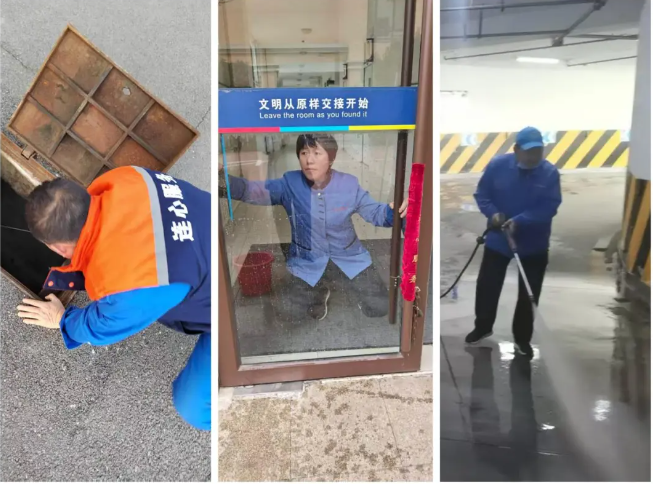 重點(diǎn)區(qū)域深度清潔:利用高壓沖洗設(shè)備對(duì)地下車庫、校園主干道等區(qū)域進(jìn)行徹底沖刷,有效清除污漬與安全隱患。