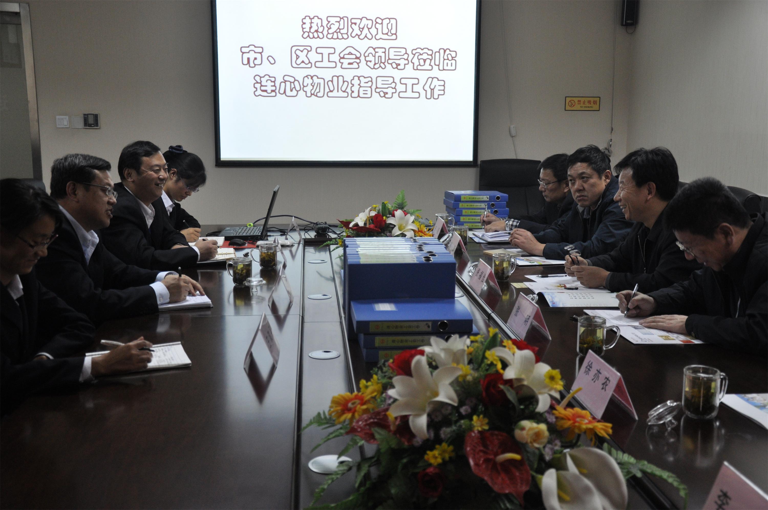 2014年11月6日,濟南市總工會常務(wù)副主席張福儉同志、財務(wù)部長宋強同志、辦公室主任韓躍同志,在歷下區(qū)總工會主席張明同志、副主席徐亦農(nóng)同志、副主席李穎同志的陪同下蒞臨公司調(diào)研。濟南連心物業(yè)有限公司總經(jīng)理王宏勇同志、工會主席吳建軍同志、工會副主席向修榮同志、女職工委員王雙平同志接待了與會領(lǐng)導(dǎo)。