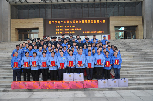 為進一步打造高素質的員工隊伍,提高員工的業(yè)務素質和技術水平,激發(fā)員工學技術、練基本功的積極性,營造“比、學、趕、幫、超”的良好氛圍,歷下區(qū)總工會第二屆物業(yè)管理勞動技能大賽于2015年10月30日下午2:00在山東省文化館舉行。歷下區(qū)總工會主席張明同志、歷下區(qū)總工會副主席李穎同志、山東省文化館副館長竇同寬同志、歷下區(qū)總工會辦公室主任李本剛同志、濟南連心物業(yè)有限公司黨支部書記、總經(jīng)理王宏勇同志、濟南連心物業(yè)有限公司常務副總經(jīng)理戚圣輝同志、濟南連心物業(yè)有限公司工會主席吳建軍同志,出席本次競技大賽。