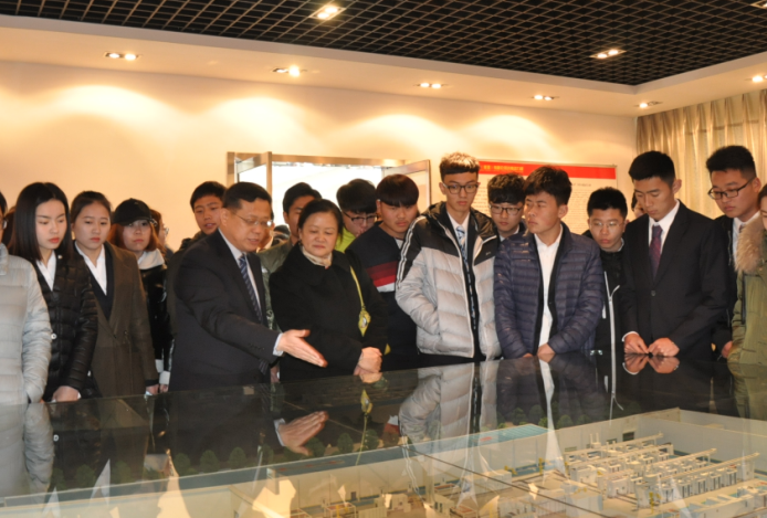 濟(jì)南連心物業(yè)有限公司總經(jīng)理王宏勇(左四)為師生進(jìn)行講解