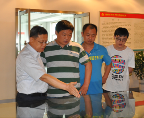 公司總經(jīng)理王宏勇(左一)為華騰領(lǐng)導(dǎo)現(xiàn)場講解