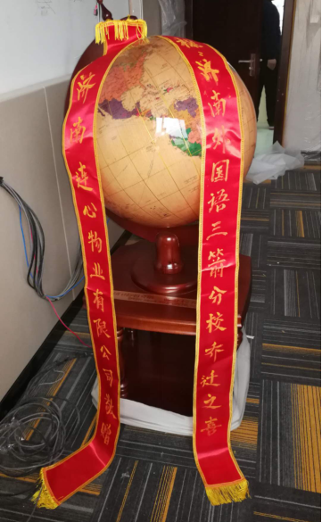 本次喬遷儀式由濟(jì)南外國語學(xué)校副校長苗翠強(qiáng)主持,全校教職工代表300余人參加了此次活動(dòng)。濟(jì)南連心物業(yè)有限公司黨支部副書記、總經(jīng)理戚圣輝代表公司為學(xué)校送去了一個(gè)地球儀—寓意濟(jì)南外國語學(xué)校聲譽(yù)譽(yù)滿全球。