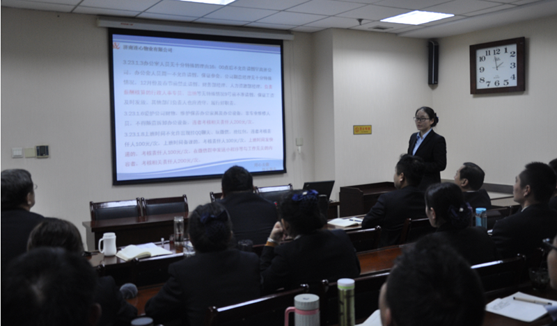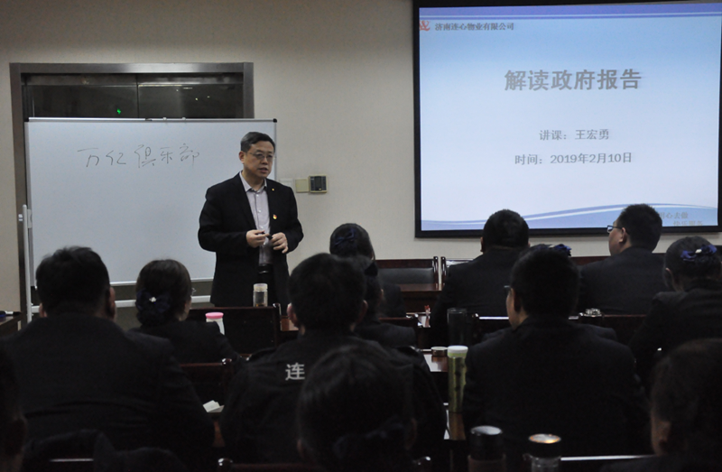 2019一元復(fù)始,萬象更新。當(dāng)人們還沉浸在節(jié)日的喜悅中,濟(jì)南連心物業(yè)有限公司全體員工已踏上征途,努力奔跑在追夢的路上。2019年2月10日上午8:00,公司二級(jí)主管以上人員共計(jì)36名,在濟(jì)南連心職業(yè)培訓(xùn)學(xué)校2307教室進(jìn)行新年集中培訓(xùn)學(xué)習(xí)。