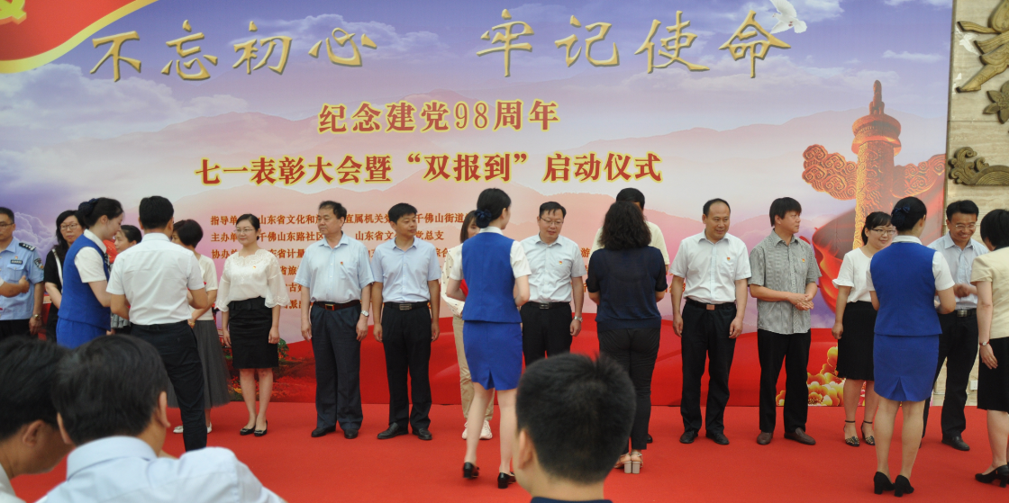 為隆重紀念中國共產黨成立98周年,回顧黨的光輝歷程,謳歌黨的豐功偉績,展示黨十八大以來社區(qū)基層黨組織和廣大黨員充分發(fā)揮戰(zhàn)斗堡壘作用和先鋒模范作用,以及在各條戰(zhàn)線,各個領域,各項工作中取得的豐碩成果,積極營造積極健康向上,追趕超越的良好社會氛圍。2019年6月27日上午9:30,由山東省文化和旅游廳、千佛山黨工委指導,山東省文化館、千佛山東路社區(qū)黨委主辦,十五家社區(qū)共建單位協(xié)辦的“不忘初心 牢記使命七一表彰大會暨‘雙報到’啟動儀式在山東省文化館隆重舉行,濟南連心物業(yè)有限公司駐山東省文化館項目部負責此次活動的全面后勤保障工作。