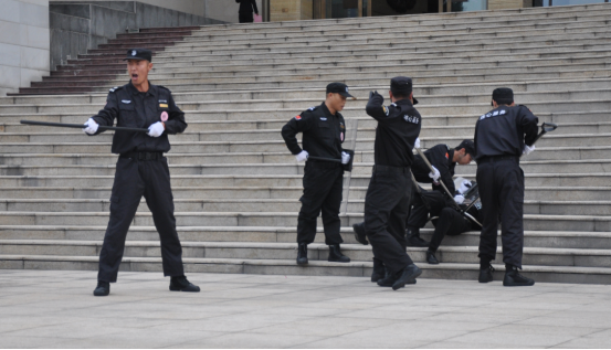 賽中,各位選手精神抖擻,氣宇軒昂,體現(xiàn)了連心物業(yè)員工良好的精神面貌。秩序維護(hù)形象展示將整個比賽活動推向了高潮。形象展示、交接班服務(wù)規(guī)范、車輛指揮、盾牌操展示、接待不速之客的技巧(接打電話技巧)、防暴恐演習(xí)、知識問答等,一連貫動作,反應(yīng)迅速敏捷,一氣呵成,整齊響亮的口號、行云流水般的動作演示,展現(xiàn)出連心員工良好的精神風(fēng)貌,展示出連心人在工作中統(tǒng)一的服務(wù)標(biāo)準(zhǔn)和高超的服務(wù)技能,我們的秩序維護(hù)隊(duì)員用自己的實(shí)際行動去詮釋公司的服務(wù)宗旨及理念。