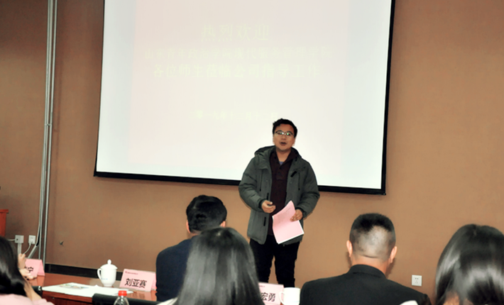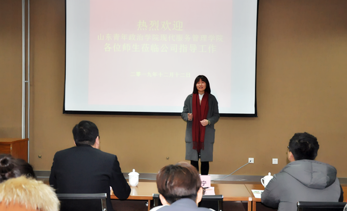 參觀結(jié)束后,山東青年政治學(xué)院師生在三樓多媒體會(huì)議室進(jìn)一步座談匯報(bào)交流。濟(jì)南連心物業(yè)有限公司黨支部書記、董事長王宏勇致歡迎詞,同學(xué)們觀看了濟(jì)南連心物業(yè)的企業(yè)宣傳片,連心物業(yè)公室主任劉亞楠做企業(yè)展示介紹,讓師生們對連心物業(yè)的發(fā)展歷程、業(yè)務(wù)布局、服務(wù)亮點(diǎn)、福利待遇以及公司發(fā)展前景等有了進(jìn)一步的了解,項(xiàng)目經(jīng)理李寶建對山東省文化館項(xiàng)目的概況、服務(wù)亮點(diǎn)、各服務(wù)條線工作的開展和服務(wù)細(xì)節(jié)等進(jìn)行了具體剖析、展示。展示期間董事長王宏勇以生動(dòng)的話語、實(shí)際的案例深入淺出的就物業(yè)管理模式、公司人才培養(yǎng)、成長晉升機(jī)制做出分析與交流。
