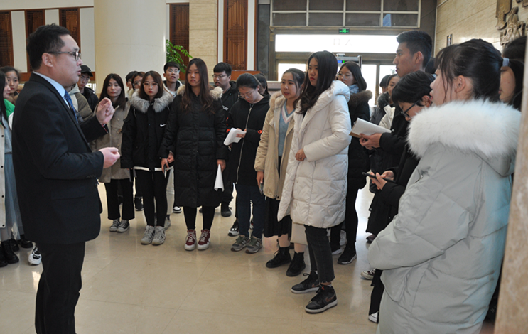 濟(jì)南連心物業(yè)有限公司是山東青年政治學(xué)院教學(xué)實(shí)訓(xùn)基地單位。2019年12月12日下午14:00,山東青年政治學(xué)院現(xiàn)代服務(wù)管理學(xué)院2019級(jí)物業(yè)管理專業(yè)本科班的37名學(xué)生在學(xué)院老師劉亞賽、于瑞寧等帶領(lǐng)下,專程來到濟(jì)南連心物業(yè)有限公司服務(wù)了10余年的山東省文化館項(xiàng)目進(jìn)行現(xiàn)場教學(xué)參觀學(xué)習(xí)。校方此行受到濟(jì)南連心物業(yè)有限公司黨支部書記、董事長王宏勇、辦公室主任劉亞楠、項(xiàng)目經(jīng)理李寶建、以及同為山東青年政治學(xué)院畢業(yè)學(xué)長的連心物業(yè)項(xiàng)目經(jīng)理孫慶峰、楊明軍的熱情接待。