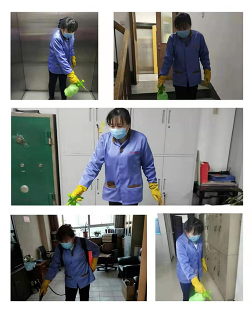 春節(jié)前夕,在接到疫情不斷加重的通知后,呂桂蕓主動(dòng)放棄休假,跟隨項(xiàng)目經(jīng)理學(xué)習(xí)消毒夜配比方法、噴霧器的使用、手套、口罩的正確佩戴。她說(shuō):雖然我們做的是打掃衛(wèi)生的工作,但是我深知環(huán)境的安全對(duì)整個(gè)銀行的重要,我們不能落下每一個(gè)角落。作為保潔班長(zhǎng)每天早晨不到7點(diǎn),她就早早來(lái)到工作崗位,將消毒物品按照要求準(zhǔn)備好,準(zhǔn)備一天的工作。因疫情傳染性比較強(qiáng),對(duì)員工個(gè)人自我防護(hù)要求比較高,個(gè)別員工不注意手套和口罩的配帶,呂桂蕓多次召集所有上班保潔員,一遍遍親自示范如何操作。她說(shuō),我們只有保護(hù)好自身的安全,才能給業(yè)主提供安全的工作環(huán)境,我們一定要做好防護(hù)工作,讓我們的業(yè)主放心。站在防控疫情的第一線,呂桂蕓同志用實(shí)際行動(dòng)告訴了我們戰(zhàn)勝病毒的信心,樓梯間、盥洗間、衛(wèi)生間、電梯間、會(huì)議室、監(jiān)控中心、門(mén)崗、餐廳、接待處等每一個(gè)地方他都要認(rèn)真檢查是否進(jìn)行消毒,是否作好消毒記錄,每天早晨只有大家穿戴合格后方可進(jìn)入工作崗位,疫情來(lái)臨不能躲避,我們團(tuán)結(jié)一心,眾志成城,定能早日度過(guò)難關(guān)。