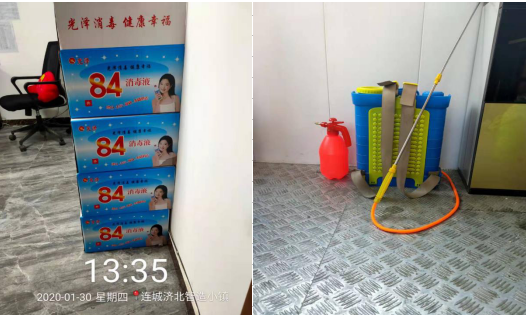 園區(qū)內(nèi)為消殺工作準(zhǔn)備充足的消毒液和用具