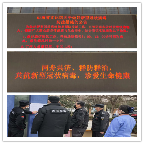 自2020年春節(jié)前夕疫情發(fā)生以來,濟南連心物業(yè)駐山東省文化館項目在文化館領導和公司領導的指示下迅速加入到疫情防控工作中,針對文化館自身的實際情況制定了疫情防控方案,對場館合理有序地堅持每日通風、清潔、人員溫度測量、消毒等工作,為抗擊疫情我們認真踐行。