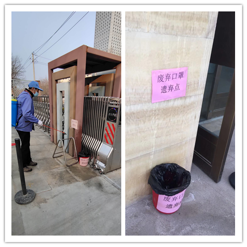 設立廢棄口罩丟棄處,每天定點巡查消毒后清理、避免二次污染。