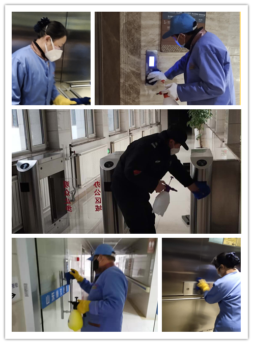堅持每天對出入口、走廊通道、道閘、電梯機箱及按鍵、垃圾桶進行必要的消毒,因病毒可能存在于任何角落,在最容易發(fā)生交叉感染的電梯按鍵、辦公區(qū)門把手、衛(wèi)生間水龍頭等細微的地方增加了消毒頻次。