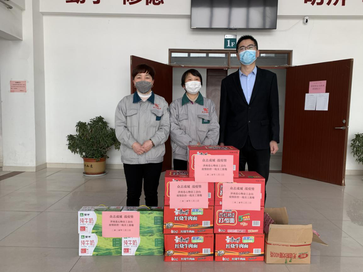 疫情防控工作已進入重要時期,為進一步支持公司對新型冠狀病毒感染的肺炎疫情防控工作,2020年3月4日,濟南連心物業(yè)有限公司工會委員會主席吳建軍帶著上級總工會領(lǐng)導(dǎo)的囑托、帶著公司董事長“致連心員工的一封信”,攜帶方便面、火腿腸、牛奶、雞蛋等慰問品深入一線,走訪慰問疫情防控一線職工,為他們送去上級總工會領(lǐng)導(dǎo)、公司領(lǐng)導(dǎo)及公司工會的關(guān)心與關(guān)愛。