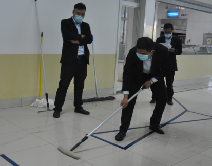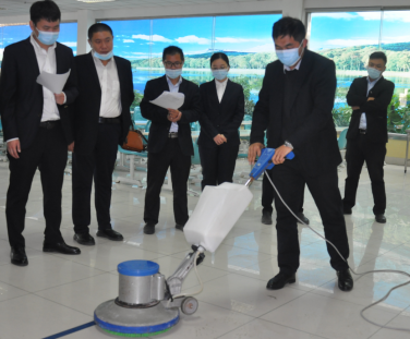 本次技能大賽活動(dòng)共分為四個(gè)科目展示:地板打蠟、洗地機(jī)操作、線路接駁、手推式割草機(jī)操作,分別從保潔、綠化、維修三個(gè)方面對(duì)管理人員的實(shí)際操作能力進(jìn)行考評(píng)。裁判組由總經(jīng)理孟令乾、分管西部片區(qū)副總曹立、分管東部片區(qū)總經(jīng)理助理李義、西部片區(qū)項(xiàng)目經(jīng)理代表李寶建、東部片區(qū)項(xiàng)目經(jīng)理代表馬雪峰等6人組成。以曹立為組長(zhǎng)的西部片區(qū)裁判組成員為東部片區(qū)項(xiàng)目經(jīng)理進(jìn)行評(píng)分;以李義為組長(zhǎng)的東部片區(qū)裁判組成員為西部片區(qū)項(xiàng)目經(jīng)理評(píng)分,兩組同時(shí)進(jìn)行比賽。