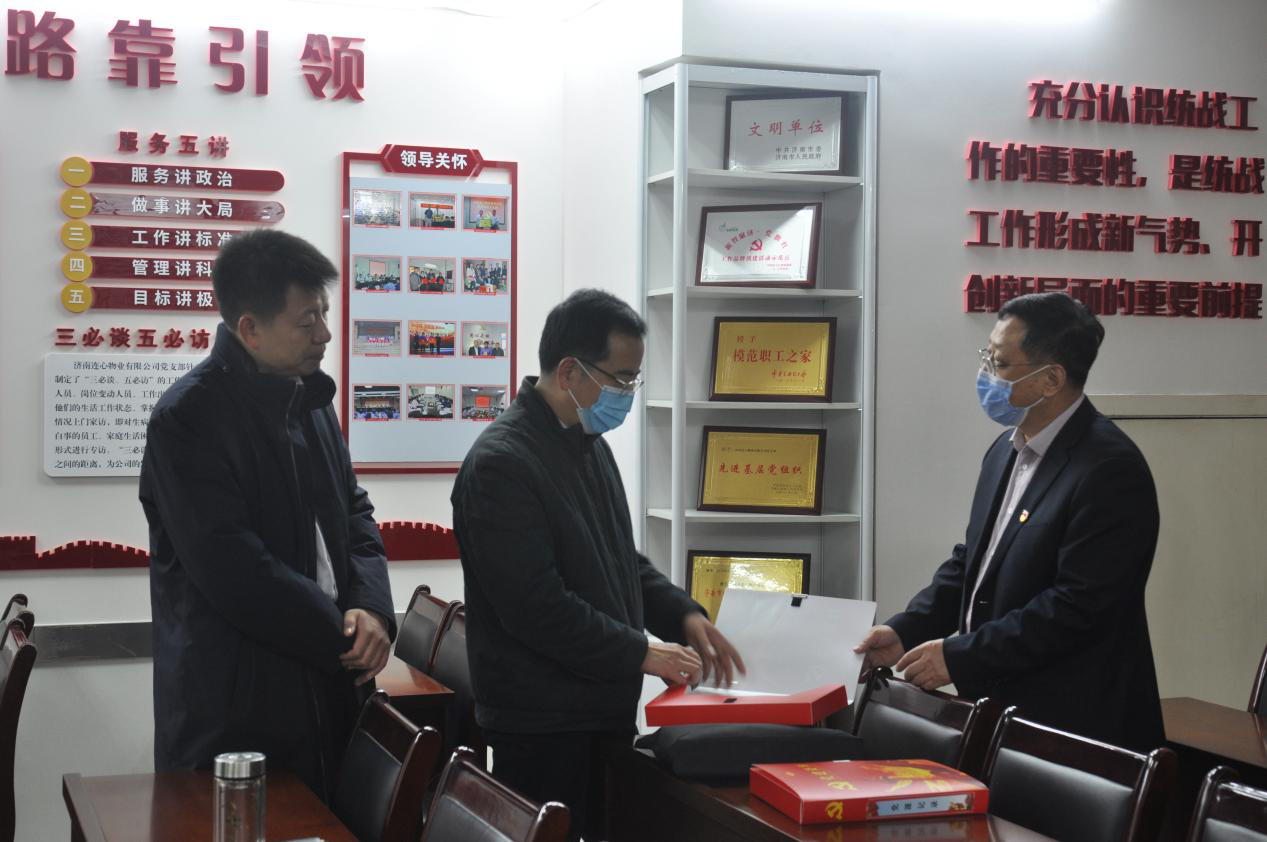 濟(jì)南連心物業(yè)有限公司黨支部書(shū)記、董事長(zhǎng)王宏勇陪同劉海峰書(shū)記參觀了公司黨員活動(dòng)室。為加強(qiáng)黨建引領(lǐng),打造紅色物業(yè),濟(jì)南連心物業(yè)有限公司黨支部立足行業(yè)特點(diǎn),提煉“三必談、五必訪(fǎng)”工作方法,堅(jiān)持做到“服務(wù)講政治、做事講大局、工作講標(biāo)準(zhǔn)、管理講科學(xué)、目標(biāo)講極致”,充分發(fā)揮黨支部戰(zhàn)斗堡壘作用,拉近企業(yè)與業(yè)主、與員工之間的距離,為公司的發(fā)展?fàn)I造了和諧向上的良好氛圍。劉書(shū)記對(duì)連心物業(yè)黨支部工作給予充分肯定,希望濟(jì)南連心物業(yè)有限公司再接再厲,進(jìn)一步加強(qiáng)黨建引領(lǐng),打造紅色物業(yè),充分發(fā)揮非公黨建在市場(chǎng)服務(wù)領(lǐng)域的積極作用。