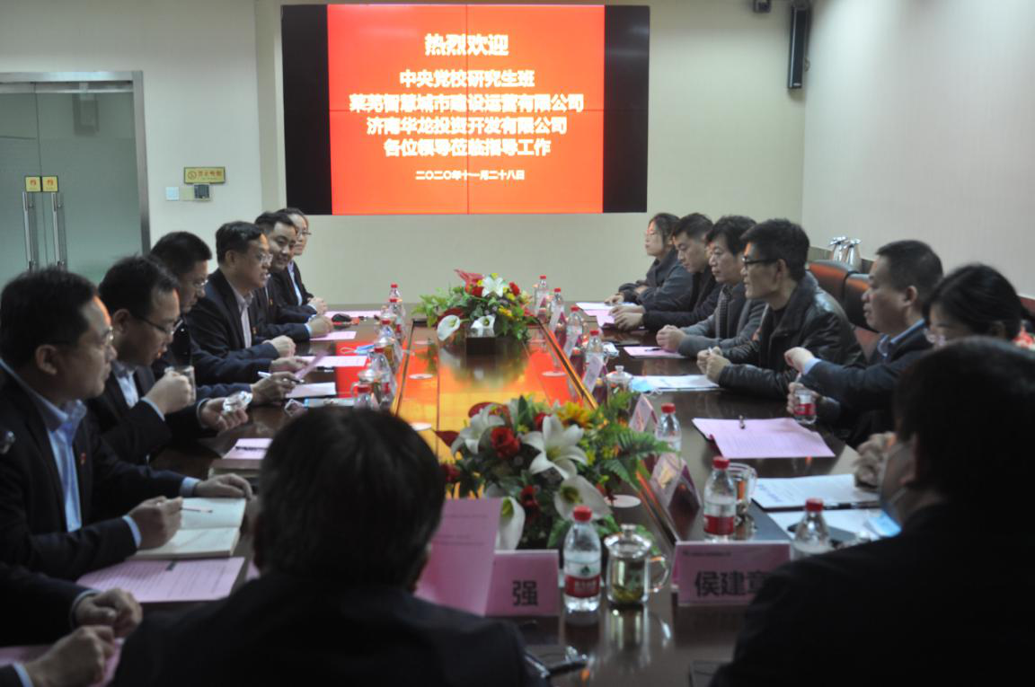 16:10,省委黨校教授、中央黨校研究生班班主任翟術鵬帶領研究生班部分學員蒞臨連心物業(yè)總部與萊蕪智慧城市建設運營有限公司、濟南華龍投資開發(fā)有限公司領導一起進行工作交流指導。雙方共同參觀了連心物業(yè)總部黨建活動室、觀看了企業(yè)宣傳片、聽取了連心物業(yè)公司詳細匯報。