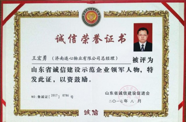 其實(shí),他的頭銜還有很多,像山東省誠(chéng)信建設(shè)示范企業(yè)領(lǐng)軍人物、濟(jì)南市勞動(dòng)模范、濟(jì)南市工商聯(lián)常委、濟(jì)南市工商聯(lián)直屬商會(huì)副會(huì)長(zhǎng)、濟(jì)南市物業(yè)管理行業(yè)協(xié)會(huì)副會(huì)長(zhǎng)和濟(jì)南市“五一勞動(dòng)獎(jiǎng)?wù)隆鲍@得者,等等。