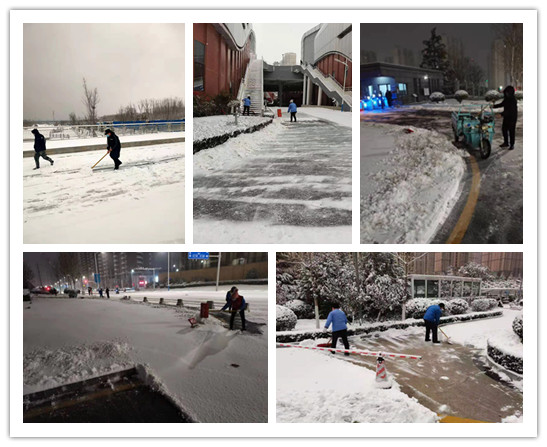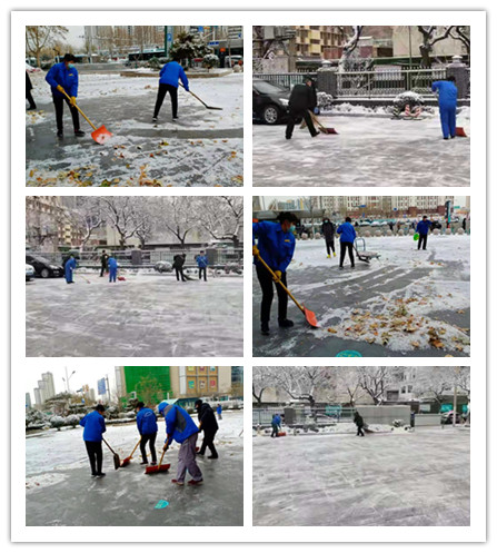 雨雪交加的天氣并不能打消物業(yè)人工作的熱情,他們揮舞著鐵鍬、掃帚,成為了一道亮麗的風(fēng)景線。大家團(tuán)結(jié)協(xié)作,很快各項(xiàng)目上就恢復(fù)了正常的通行,為業(yè)主的正常工作和生活帶來(lái)了便利。