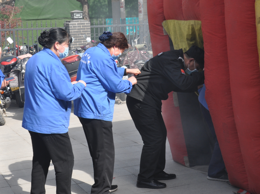 副總經(jīng)理曹立講到,2021年是不平凡的一樣,濟(jì)南市“幾場”大火也為我們的物業(yè)工作起到了警示作用,作為業(yè)主單位的后勤保障單位,我們在做好日常物業(yè)服務(wù)的同時(shí),更重要的是保障業(yè)主的安全問題,消防演習(xí)不僅加強(qiáng)了項(xiàng)目員工安全意識(shí),同時(shí)也強(qiáng)化了項(xiàng)目部應(yīng)對突發(fā)災(zāi)難事件的應(yīng)急處理能力,我們只有學(xué)會(huì)基本的處理應(yīng)急事變的能力,熟悉消防“四懂四會(huì)”和消防“5、30、60”,才能成為一名合格的物業(yè)人員。大家在體驗(yàn)逃生帳篷時(shí),要將較為抽象的安全演練變成具體的實(shí)戰(zhàn)演習(xí),時(shí)刻擰緊安全弦,全力保障服務(wù)單位的生命安全。