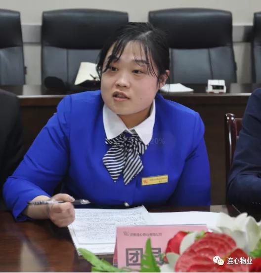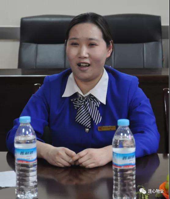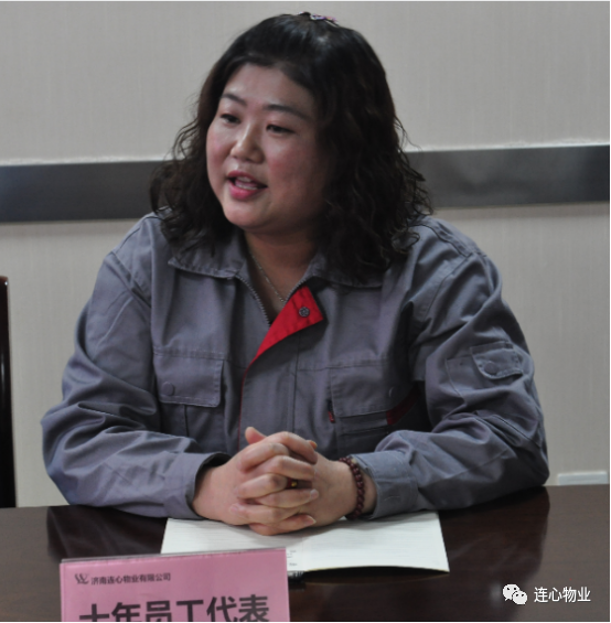 王俊鳳是濟南外國語學校項目部的一名保潔員,她在座談會中表示,連心物業(yè)是一個注重企業(yè)文化的公司,公司組織的各種文體活動不僅豐富了員工的業(yè)余生活,而且學習了知識,交流了感情,讓員工與公司心連心,勁往一處使,共同發(fā)展,共同進步。