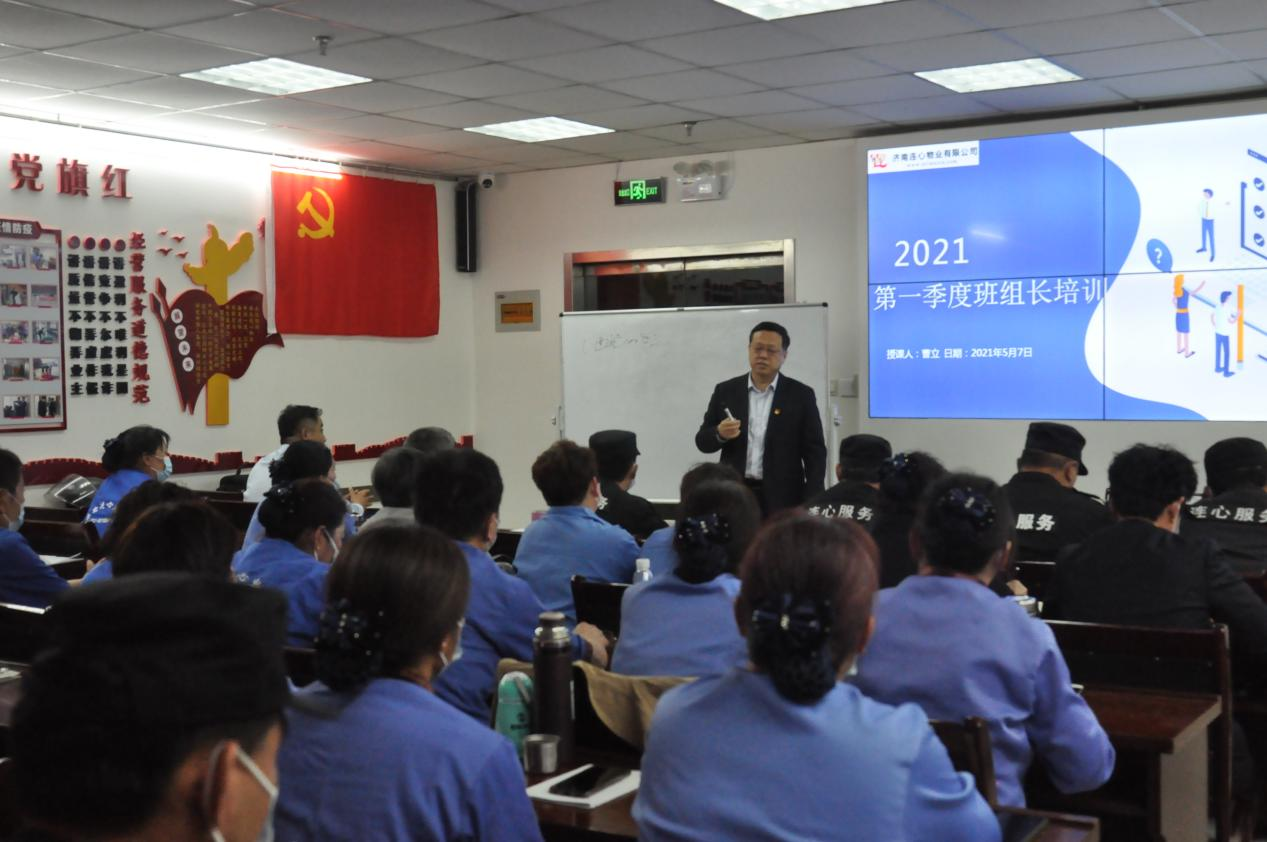 為培養(yǎng)中堅力量,推動公司標準化物業(yè)服務切實落地,2021年5月7日下午兩點,濟南連心物業(yè)有限公司舉行2021年度第二期班組長培訓,來自各項目40余名班組長參加了本次培訓。