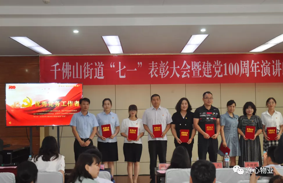 2021年7月9日,千佛山街道舉行“七一”表彰大會暨建黨100周年演講朗誦比賽。濟南連心物業(yè)有限公司黨支部孫耀先榮獲“優(yōu)秀黨務(wù)工作者”榮譽稱號、卜小溪榮獲演講朗誦比賽二等獎優(yōu)異成績。