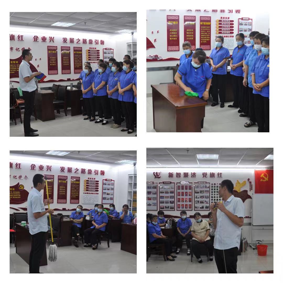 “耳聞不如目見之,目見不如足踐之”,講師張奇帶領(lǐng)學(xué)員進(jìn)行了實(shí)操培訓(xùn),從抹布顏色的區(qū)分及“一床一巾、一桌一布” 使用、玻璃器的使用方法、吸塵器注意事項(xiàng)等幾方面對學(xué)員進(jìn)行了手把手的實(shí)操教學(xué)、一對一的演練,讓每一位學(xué)員都能上手操作自己不熟練的技能,保證后續(xù)上崗能按照標(biāo)準(zhǔn)使用各類工具,高質(zhì)量完成清潔工作。