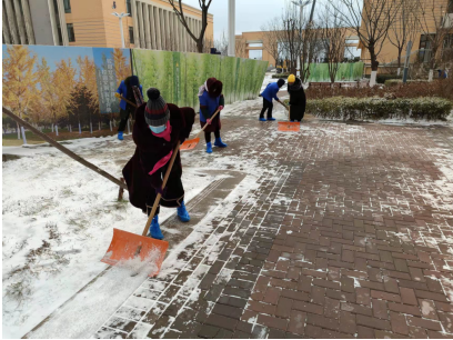 連心物業(yè)團(tuán)隊(duì)充分發(fā)揮不怕冷不怕累的工作作風(fēng),一直堅(jiān)守在掃雪第一線(xiàn),確保了主要出入口、主干道的暢通,為師生提供了良好的通行環(huán)境。