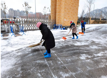 首先與學(xué)校溝通,將清雪工具提前申領(lǐng),并將存放點(diǎn)告知員工,其次按照師生出行主要路線(xiàn),劃分清雪責(zé)任區(qū)域,明確責(zé)任區(qū)內(nèi)清雪人員。