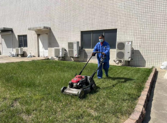 項目保環(huán)境工作人員每天認真完成環(huán)境清潔、綠化養(yǎng)護工作任務,認真執(zhí)行每日徹底消毒消殺工作,協(xié)助餐廳洗涮;項目綠化工作崗,為了防止廠區(qū)草坪生長導致開花結子,繼續(xù)堅守工作崗位,保證每天修剪進度不受疫情影響。