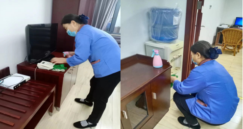 項目部根據(jù)歷城供電公司和連心物業(yè)應(yīng)急防控要求,每日定時對辦公樓進(jìn)行全面消毒消殺工作,加強(qiáng)對公共區(qū)域的重點部位步梯、衛(wèi)生間、門把手、垃圾桶的消毒頻次。為避免二次污染,在各樓層設(shè)置廢棄口罩回收專用桶。電梯口放置一次性按鍵專用抽紙,每天兩次對電梯按鍵面板處使用的防護(hù)膜進(jìn)行更換,同時進(jìn)行酒精消毒,減少交叉感染風(fēng)險。電梯轎廂及人員密集重點區(qū)域每日多次進(jìn)行酒精噴灑消毒,確保消毒工作全覆蓋。因疫情期間食堂暫停堂食,采取盒餐用餐制度,所以無形之中給保潔人員的工作增加了不少的工作量,保潔人員需要對每天早中晚所有的餐盒進(jìn)行收集、傾倒、分類處理等工作,工作量的增多他們卻沒有任何怨言,大家相互配合,認(rèn)真工作,確保辦公樓內(nèi)無異味,干凈整潔。保潔人員每天對留宿人員值班室內(nèi)的辦公用品、生活用品進(jìn)行消毒工作,他們以高度敬業(yè)的工作態(tài)度、扎實的工作作風(fēng),為業(yè)主筑起安全健康的防護(hù)網(wǎng)。