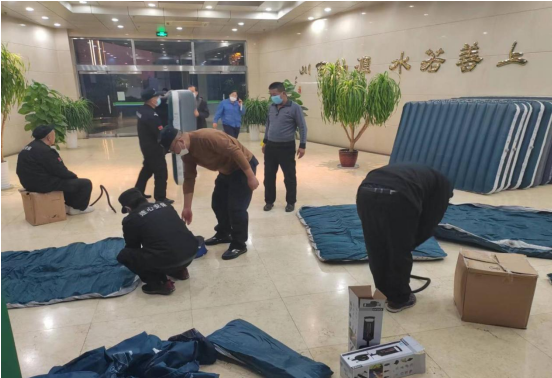 接到任務(wù)后,在博士倫領(lǐng)導(dǎo)各方協(xié)調(diào)下,共準(zhǔn)備了廠區(qū)200多人的生活物資,連心物業(yè)秩序維護(hù)人員主動承擔(dān)起了物資發(fā)放任務(wù),大家聽從指揮,齊心協(xié)力,有的熱火朝天的為氣墊充氣,有的井然有序的分發(fā)被褥。經(jīng)過三個小時的奮戰(zhàn),終于把駐廠的所有員工安排妥當(dāng)。