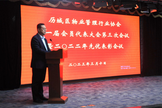 2023年3月10日下午,濟(jì)南市歷城物業(yè)管理行業(yè)協(xié)會第一屆會員代表大會第三次會議在濟(jì)南蓮臺山會務(wù)中心召開,80名企業(yè)會員代表參加會議。