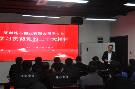 “踔厲奮發(fā)新征程 勇毅前行向復(fù)興”!連心物業(yè)黨支部書記、董事長(zhǎng)王宏勇表示:我們要認(rèn)真學(xué)習(xí)貫徹黨的二十大精神,從政治高度把連心物業(yè)的服務(wù)做好。連心物業(yè)始終站在“服務(wù)講政治、做事講大局、工作講標(biāo)準(zhǔn)、管理講科學(xué)、目標(biāo)講極致”的“服務(wù)五講”政治高度提高物業(yè)服務(wù)質(zhì)量,以實(shí)際行動(dòng)踐行“為連心立本、為物業(yè)立志、為民企立言”的企業(yè)精神,奮力譜寫連心物業(yè)發(fā)展新篇章,為實(shí)現(xiàn)“科創(chuàng)濟(jì)南、智造濟(jì)南、文化濟(jì)南、生態(tài)濟(jì)南、康養(yǎng)濟(jì)南”做出新的更大的貢獻(xiàn)。