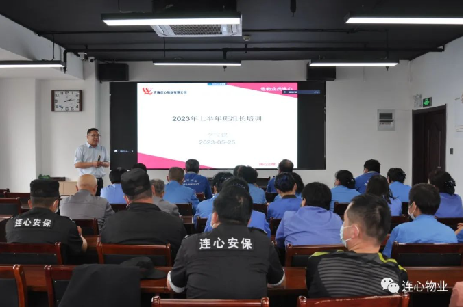 2023年5月25日下午,濟(jì)南連心物業(yè)有限公司舉行2023年第二季度班組長(zhǎng)、工會(huì)組長(zhǎng)培訓(xùn)。本次共安排26名班組長(zhǎng)、工會(huì)組長(zhǎng)參加培訓(xùn)。