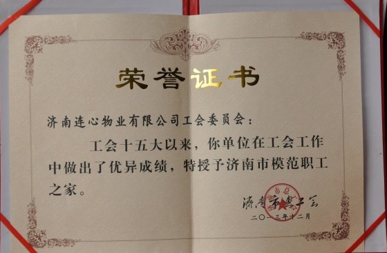 濟南市總工會為進一步調動全市廣大職工、工會工作者的積極性、創(chuàng)造性,努力推動全市工會工作創(chuàng)新發(fā)展,對表現突出的企業(yè)給予表彰。濟南連心物業(yè)有限公司表現優(yōu)秀,被授予濟南市“模范職工之家”榮譽稱號。(劉冠英/文)