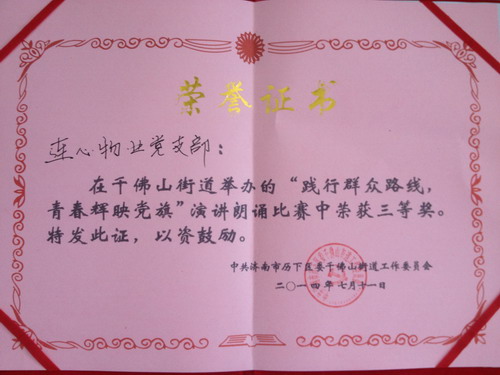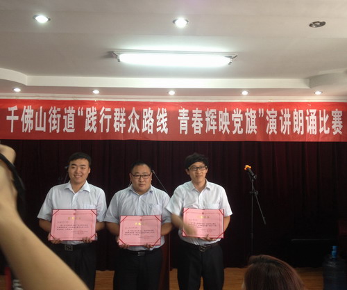 千佛山街道“踐行群眾路線青春輝映黨旗”演講朗誦比賽2014年7月11日上午9:00在千佛山街道會議室正式開始,張雁翔同志代表濟南連心物業(yè)有限公司黨支部參加此次活動。