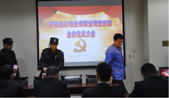 2018年11月12日下午15:00,濟(jì)南連心物業(yè)有限公司黨支部召開2018年四季度全體黨員大會(huì),本次會(huì)議主要有三個(gè)重要議題:(一)全體黨員進(jìn)行濟(jì)南連心物業(yè)有限公司黨支部委員選舉;(二)根據(jù)黨員發(fā)展程序,就發(fā)展對象曹立同志是否接收為預(yù)備黨員的事宜進(jìn)行全體黨員表決;(三)濟(jì)南連心物業(yè)有限公司董事長王宏勇同志向全體黨員匯報(bào)公司發(fā)展情況。