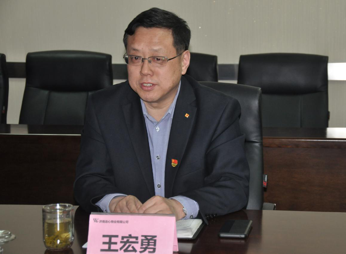 濟(jì)南連心物業(yè)有限公司黨支部書記、董事長王宏勇做交流匯報(bào)