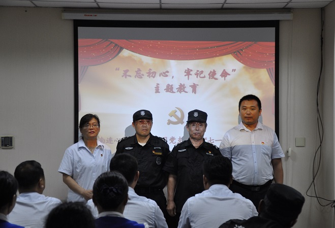濟(jì)南連心物業(yè)有限公司黨支部副書(shū)記、總經(jīng)理戚圣輝與優(yōu)秀黨員合影留念